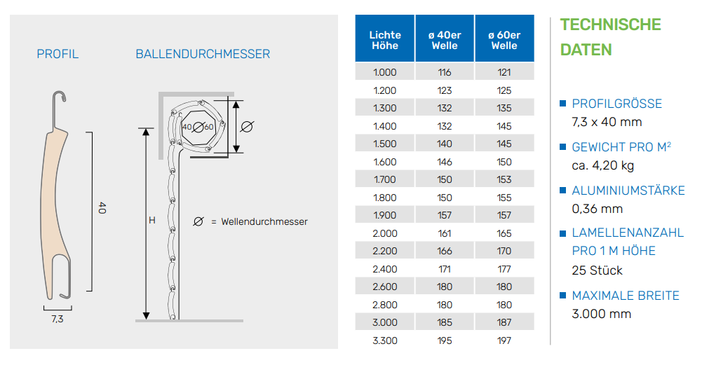 ARIALUCE 40 ist der Rollladen mit dem kleineren Profil, das für kleine Ballendurchmesser geeignet ist.